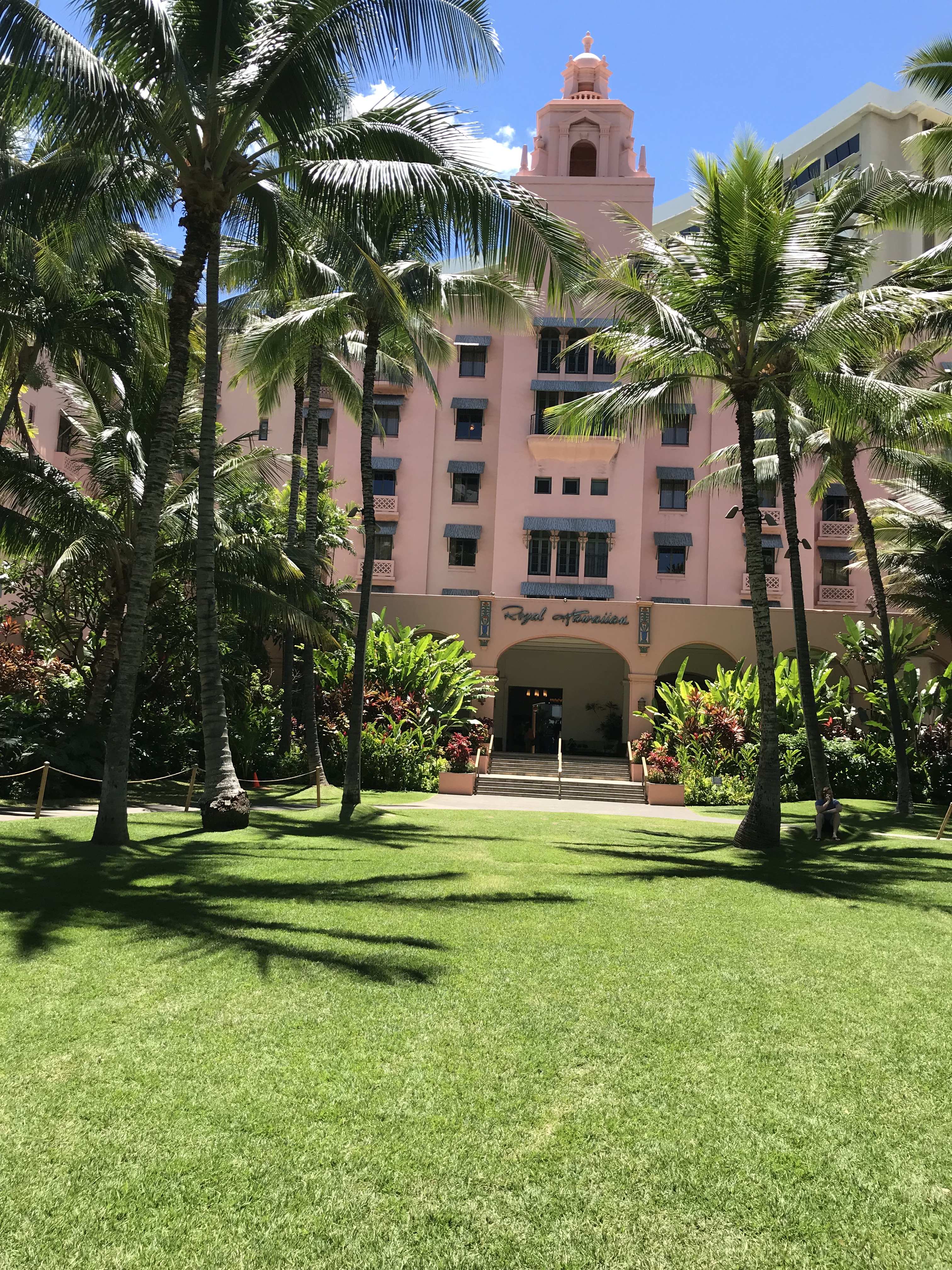 From Hanauma it’s downtown Honolulu and a walkabout of famous tourist places. I’m impressed! Starting my walk through a fancy shopping district and a multi-level open air mall I can just browse store fronts or sit in a wicker chair and take a nap! Then crossing Kalakaua Avenue out to Waikiki Beach to the iconic view of Diamond Head! Uh, yes? Looks like a sidewalk runs along the ocean side so walk it along the beach, through hotel patios, past first floor shops and cafes. Stop at one and order a cappuccino and biscotti and have both while people watching. The Royal Hawaiian is a beautiful hotel built in the 1920’s. With very high ceilings, elaborate wood work and polished marble floors! I would stay here (if I had lots of money of course!) just for the whole Waikiki experience.