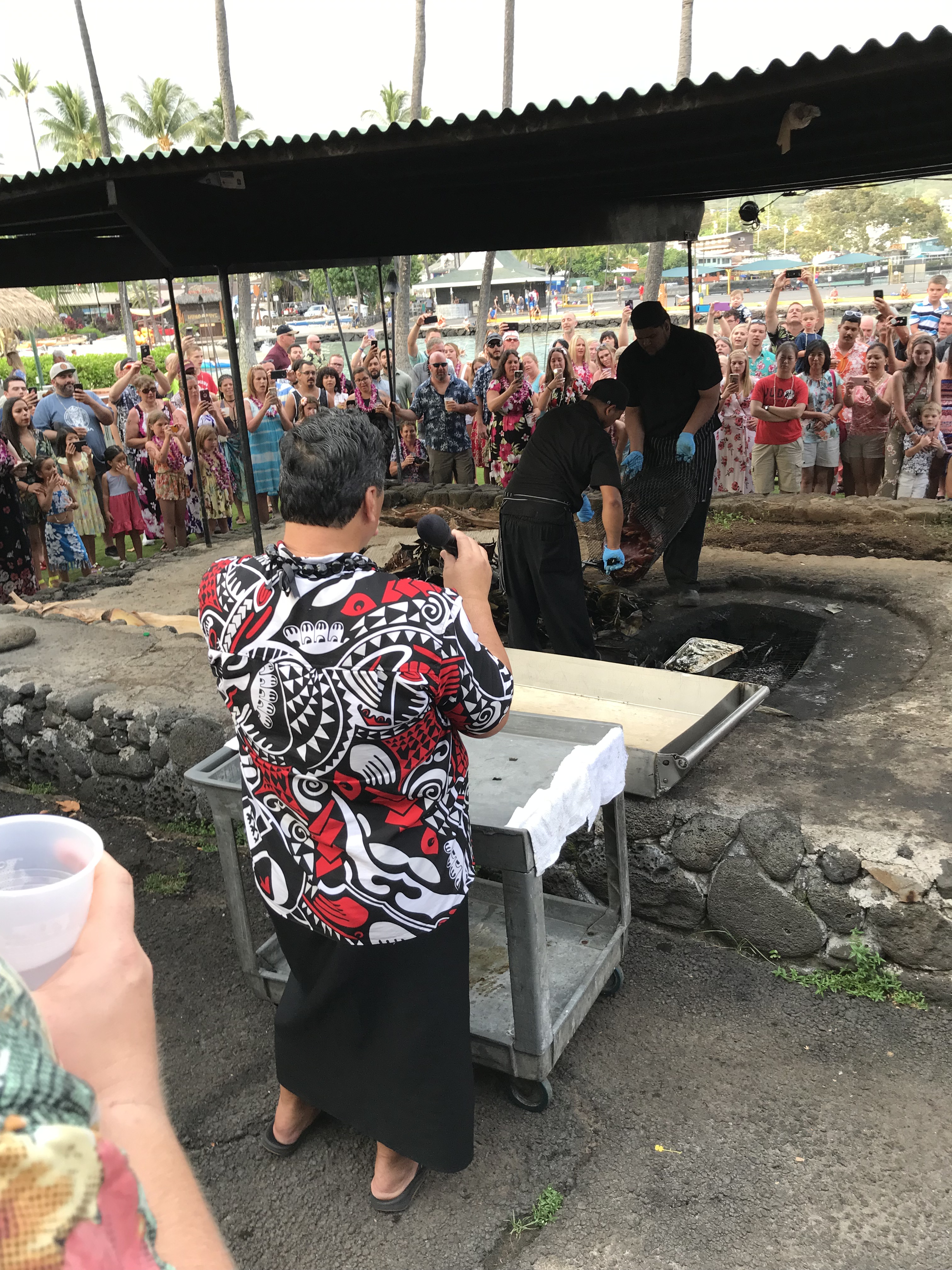 Sharon tells me she’s having a good time and has enjoyed seeing all the places we’ve visited, nature, beach, birds, air, Pacific Ocean, atmosphere, Hilo, Kailua-Kona, fresh fuit, shops, towns, Pacific Ocean, food, people, no disappointment, none. One thing before we leave is to attend a Lu’au so she treats me to the Island Breeze Lu’au. What a nice gift for me! The food was buffet style and quite good, the early entertainment was enjoyable, folks at our table nice, the show after was very entertaining and well done! Thank you to my sister for a nice time out as I’ve been careful to watch my spending while here because I want to stay for the time I planned and been a bit of a night shut in! Mahalo nui loa baby sister!