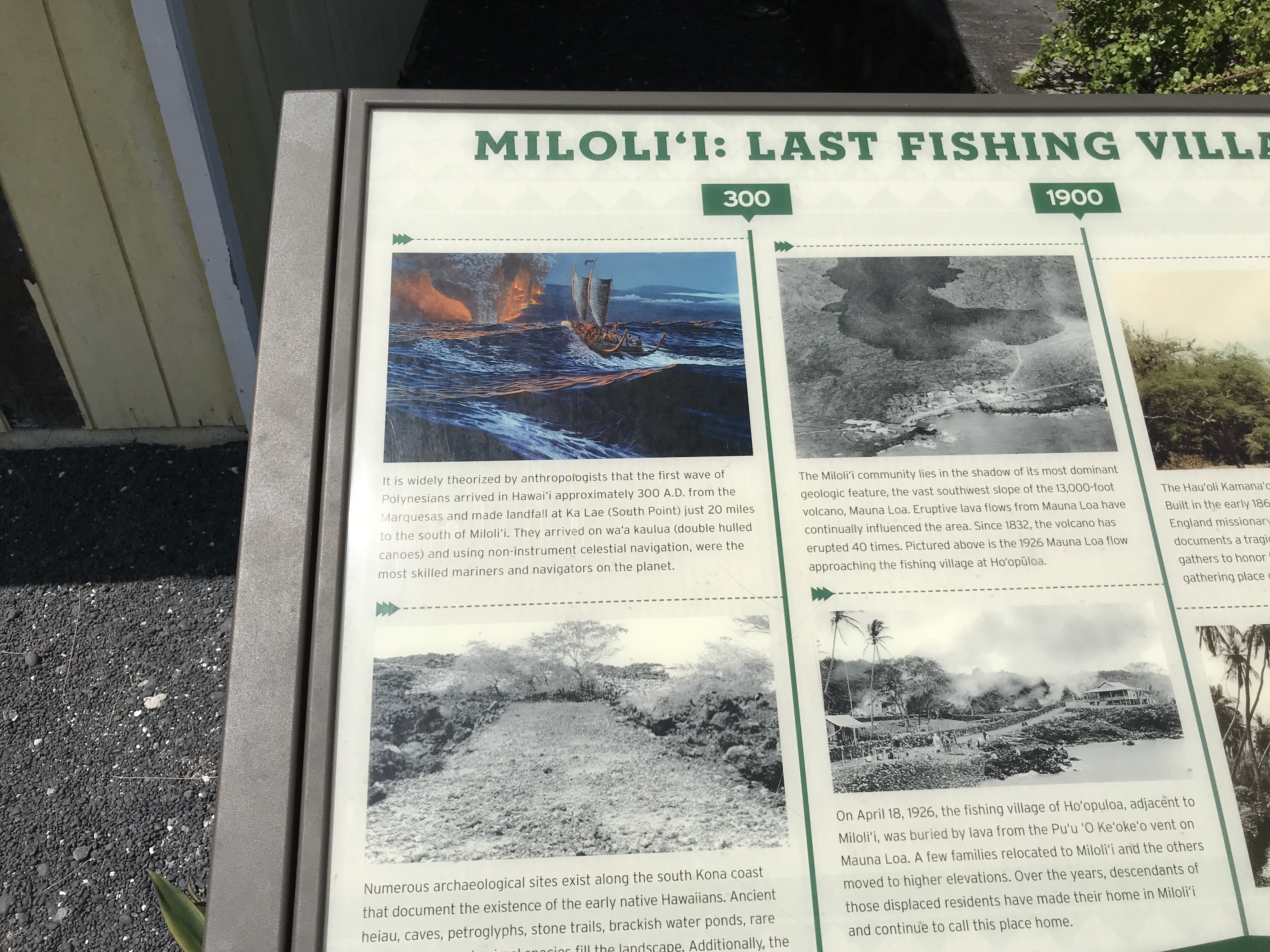 Miloli’i is an unincorporated community on the island of Hawaii in the U.S. state of Hawaii, 33 miles south of Kailua-Kona. The village is situated at the seacoast where the 1926 lava flow from Mauna Loa entered the ocean.