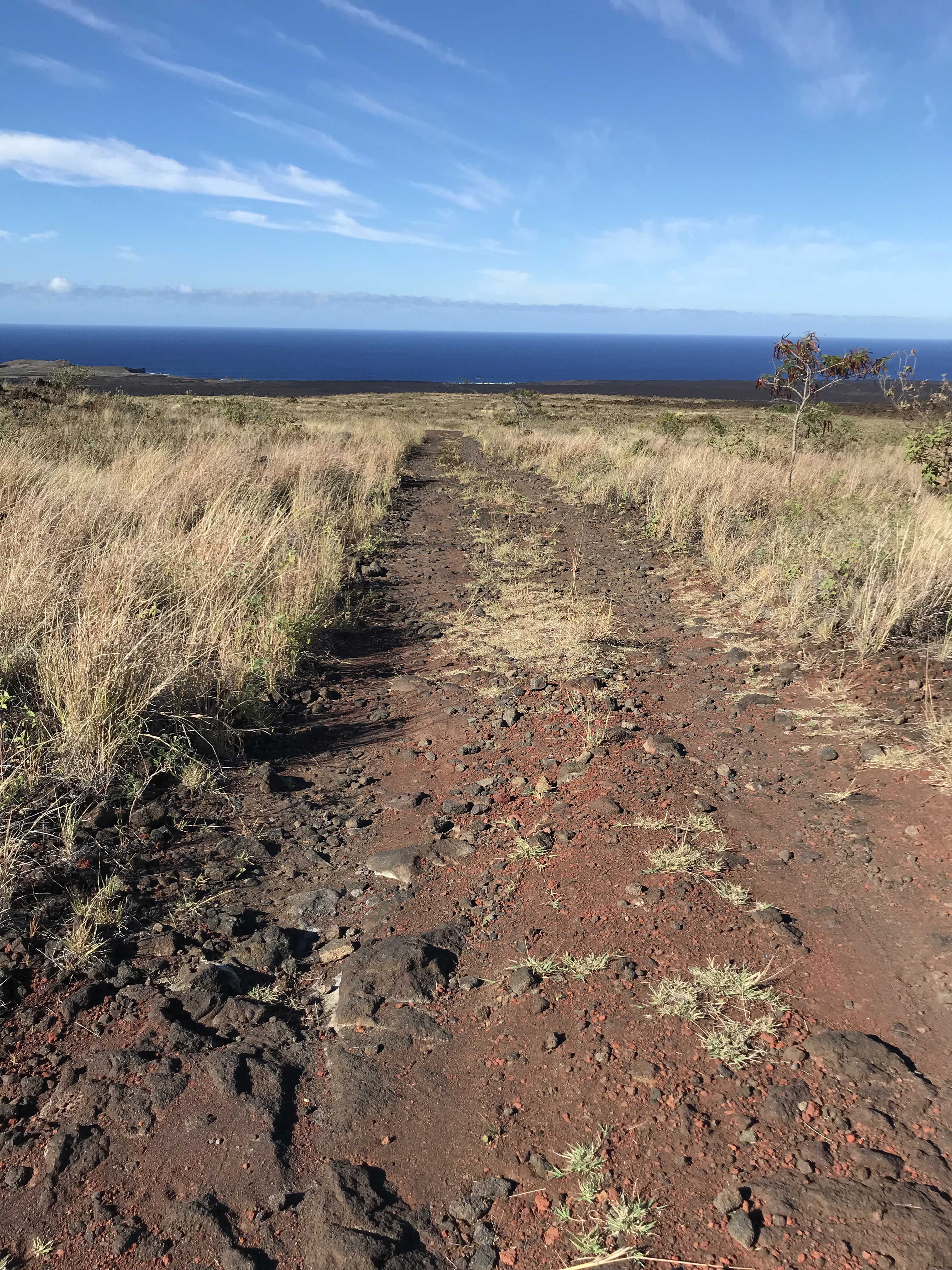 I have not spent a day on my trip without wonder at what I see on these islands. The photo below of the wind farm sitting on a plateau 400′ straight down to the ocean catches my eye whenever I drive past. I imagine the lava flow that formed such a shape and find from my map that there is no record for the flow that the wind mills sit upon but the ground at the base of the cliff is made up from the 1868 flow that swallowed Robert Brown’s farm and nearly his family. I wonder if there was a bay the 1868 flow filled in and if there was what did it look like with such high walls of lava guarding it’s flank? When on a trip to the South Point I wander over to a fisherman’s tent and asked how he catches anything with his lines 30 feet above the water with the rocky shore beaten by a shifting tide and surf and he tells me that the fishermen tie a kite like set up to the end of their lines and let the wind pull the bag with hooked end out over the water and when it’s out far enough they pull the kite in and let the line drop. I notice a plastic bat tied on the end of the rod and he tells me when the bat gets yanked up/down? (not sure which) he knows that there is something on the end, reeling the fish in a zip line set up with a fish gaff hoked on slips down to snag the catch which is hauled up 30 plus feet to where he’s standing. Do you sell your catch? I ask and he, like others I’ve talked to, gives away to family and friends what isn’t kept https://www.nps.gov/havo/planyourvisit/upload/Puu-o-Lokuana-Trail-Guide.pdf