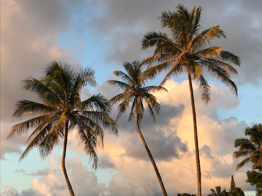 Places: Akaka Falls, Hilo, Hana, Lahaina, Honolulu, Makaha, Diamond Head Crater, Mama’s Fish House, Haleakala, the top of Mauna Kea, Mauna Kea beach, Waimea, Kailua-Kona, Ocean View, Volcanoes National Park, Princeville, Kapaa, Waimea Canyon, Hideaway Beach, Lydgate Beach Park, Sunset Beach, Wailea, Kihei, Hawi, Tropical Botanical Garden, Black Sand Beach, Green Sand Beach, South Point, Red Sand Beach, Magic Sands Beach, Kamaole Beach, Two Step, Hoomaluhia Gardens, Hanauma Bay, Waimanalo Beach, Kokololio Beach, Waimea Falls, Pupukea Trail and my lost adventure, Aiea Loop Trail, Ka’ena Point, Haleiwa Town, Captain Cook……every place a fond memory.