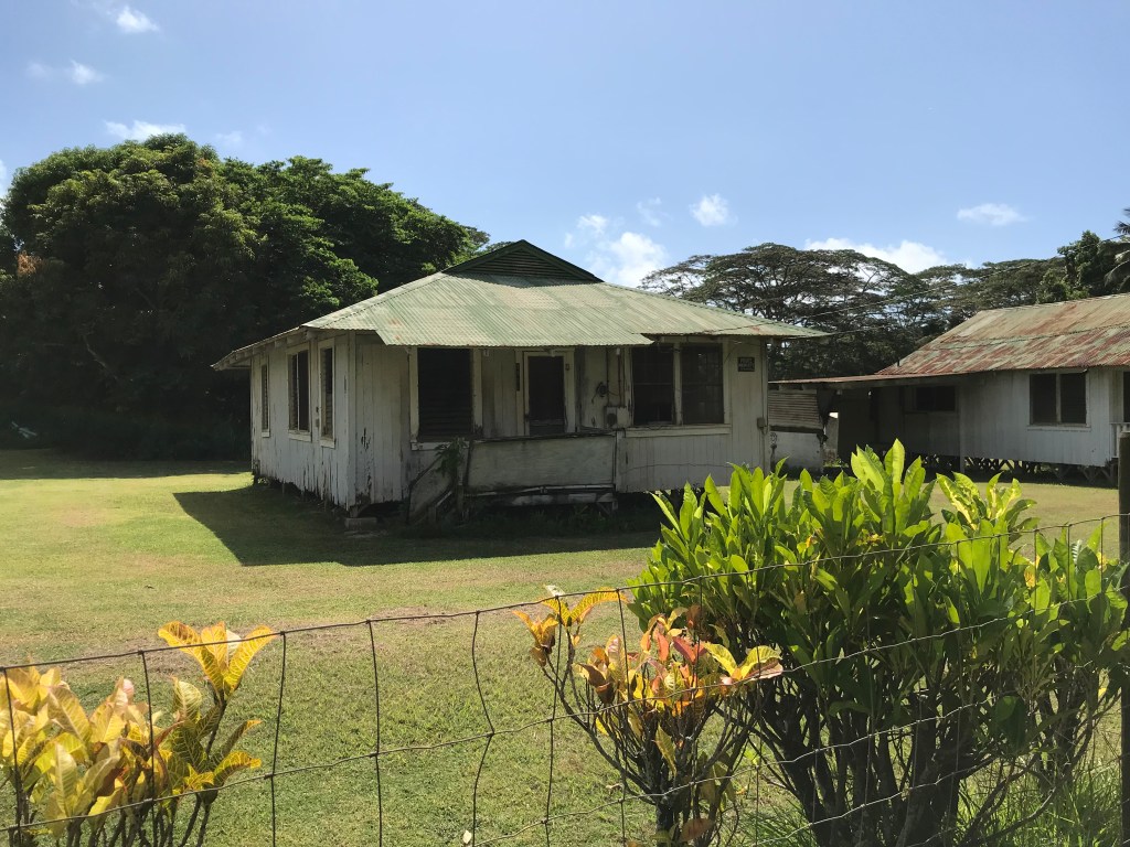 Miloli’i is purported to be “the last Hawaiian fishing village” according to a wooden sign in their community center. Without access to power lines or water, each house provides its own electricity and water with solar panels.and tanks that collect rain water.